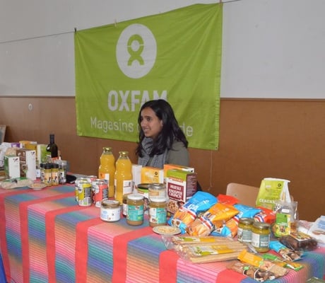 - Régine de Coster pour Oxfam avec des produits équitables,