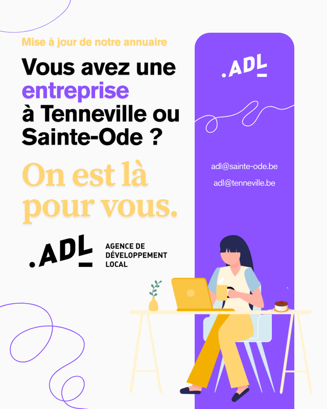Vous venez de lancer une activité et ne vous êtes pas encore manifesté auprès de l'ADL ? Ne tardez plus : contactez l'ADL, Sophie Bosquée, via adl@sainte-ode.be ou au 061/21.04.47.
